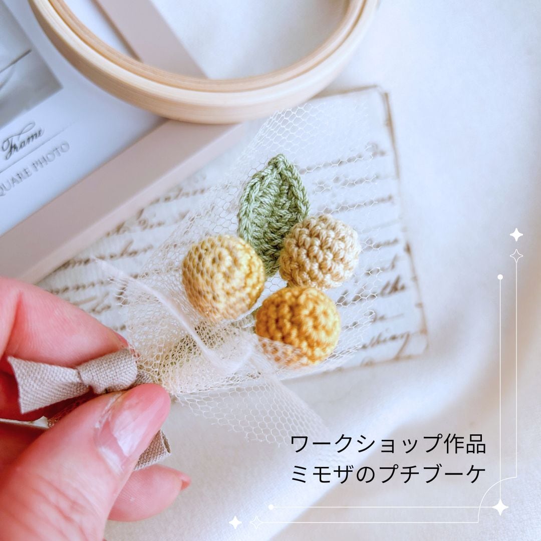 ミモザと葉っぱはかぎ針で編むお花の基礎が詰まった
