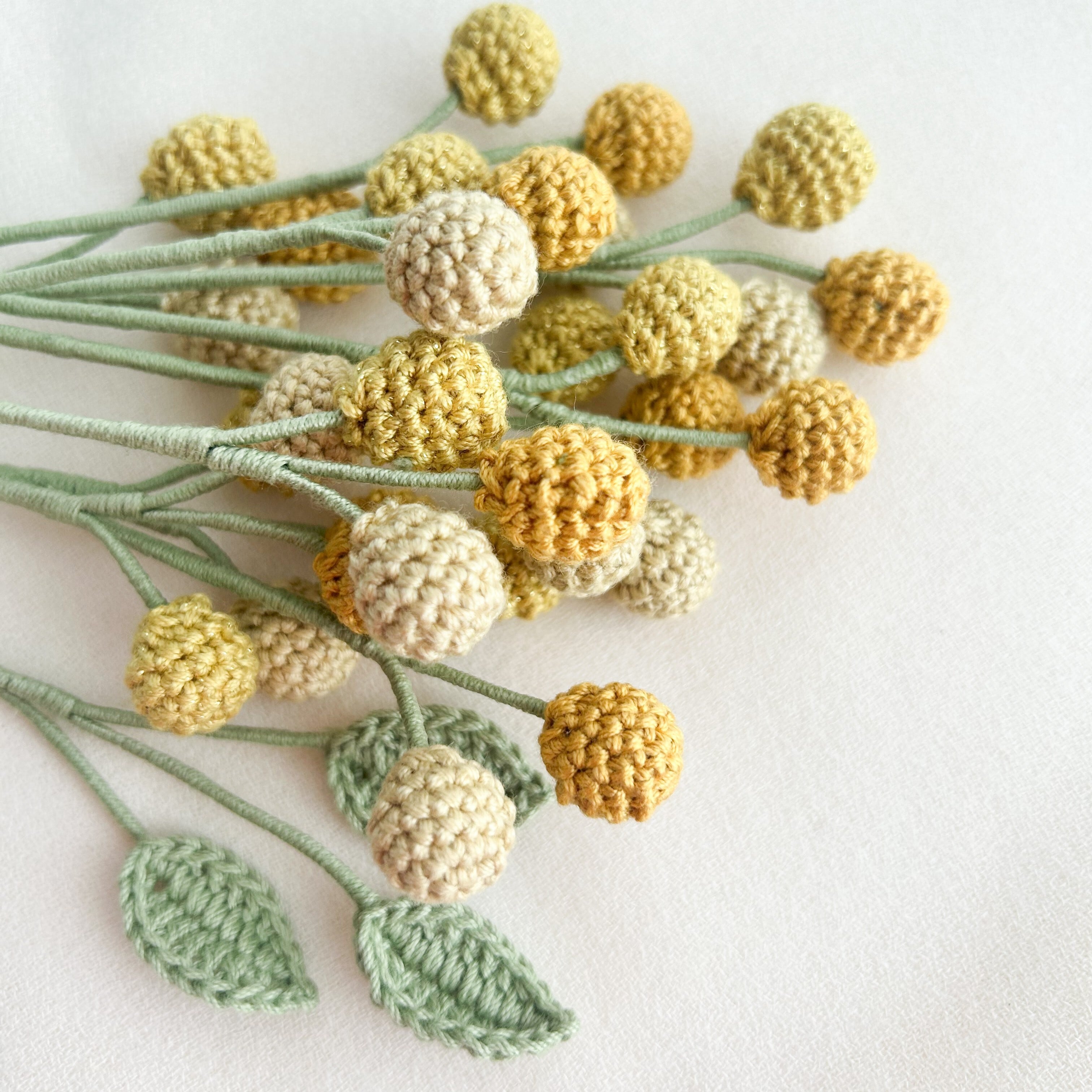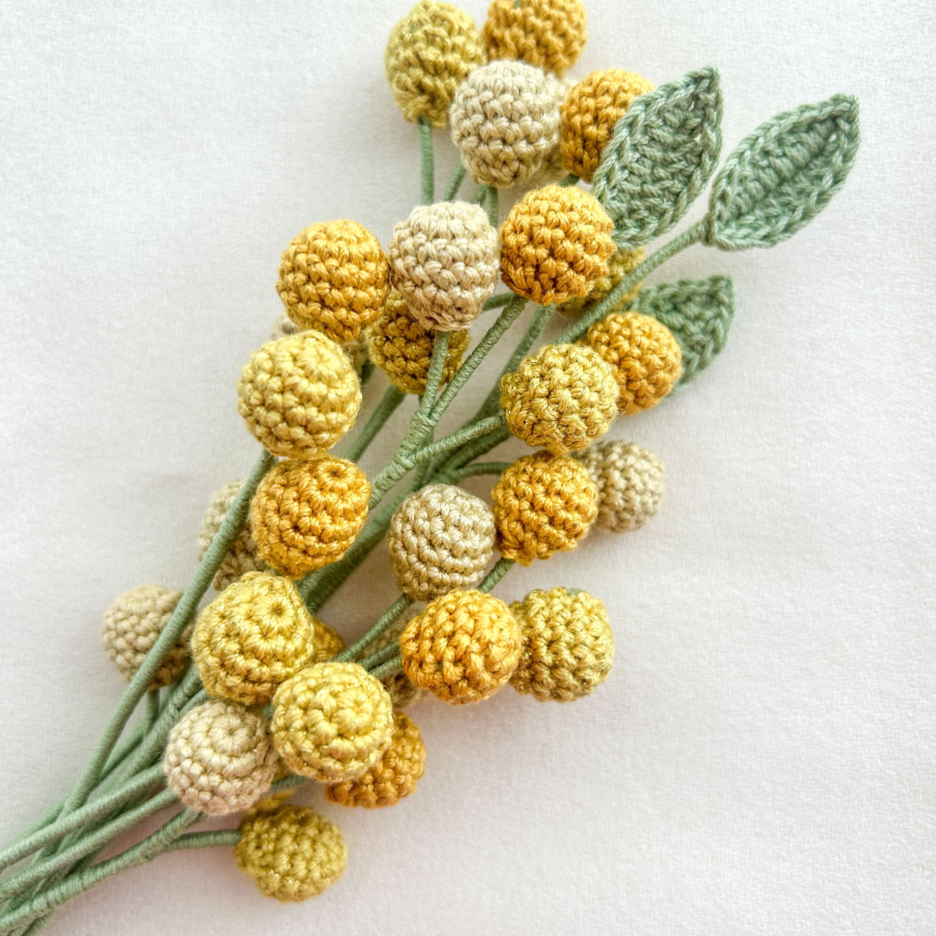 本『花を編む』掲載の10ページ、ミモザの花が制作できます