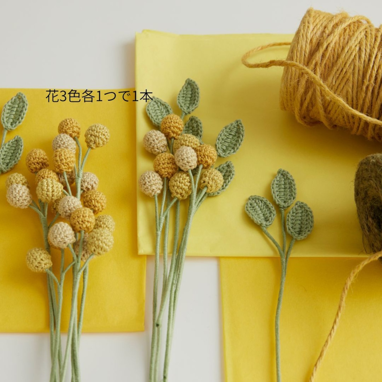 3つの色で1本のミモザ2本が作れます。