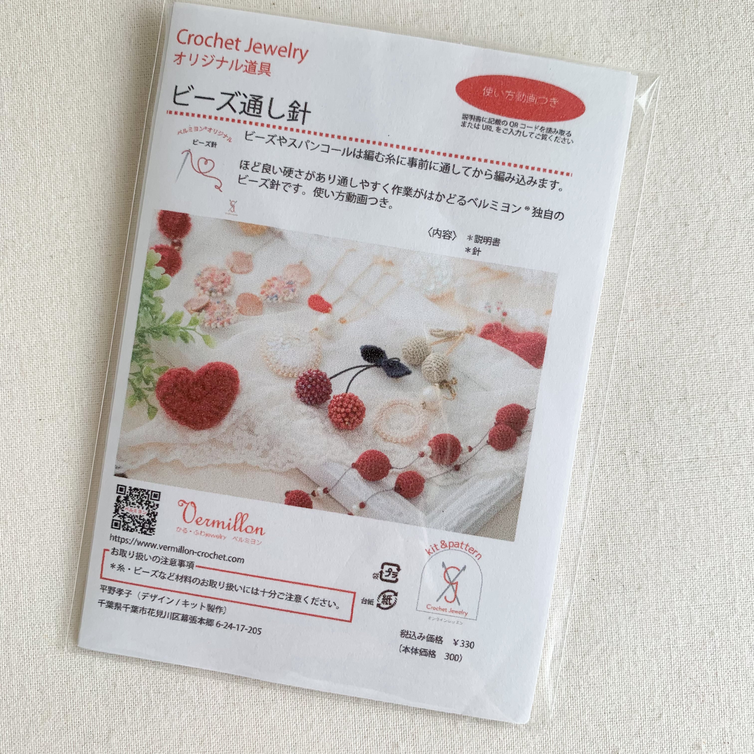 丸大、丸小ビーズをかぎ針2/0号で編める糸に通すことができます。